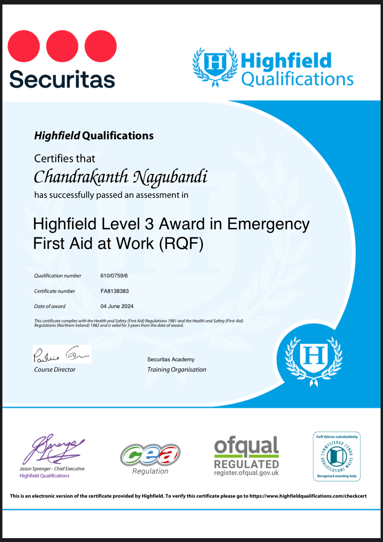 SECURITAS, UK | 2022 – 2025 SUPERVISOR